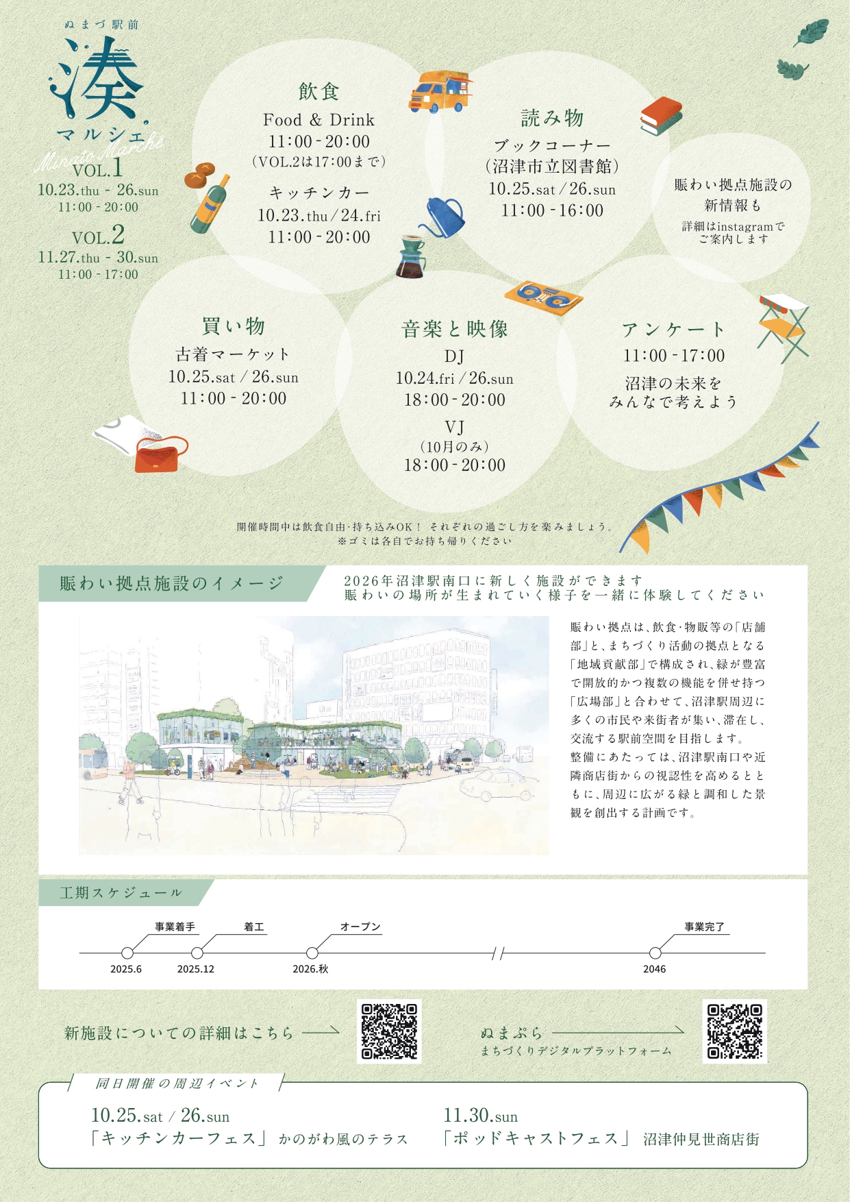 【官民連携のまちづくり推進プロジェクト】沼津駅南口で「ぬまづ駅前 湊マルシェ」を開催!( 開催日:10/23-10/26、11/27-11/30)